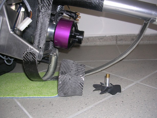 optimal auf den Motor abgestimmter Carbon-Faltpropeller | Die Antriebseinheit von hinten | |