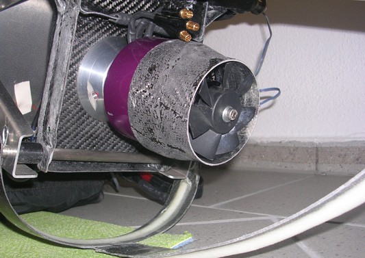 23.02.2017 Hier sind sie nun in Bildern, der erwähnten Neuerungen. Einmal der Motorschutzbügel. Dieser hält den Motor beim Abstellen des Antriebs am Boden auf Distanz zu eventuell feuchtem Gras. Zum anderen ermöglicht er nun auch eine Verkleidung auf der Unterseite anzubringen. Das andere Bild zeigt die Luftführung mit Lüfter. Dieser wird in die Hohlwelle des Motors gesteckt und dann verklemmt. Somit ist er auch jederzeit wieder lösbar und zu ersetzten. Die Luftführung wird noch über Streben an der Getriebewippe befestigt. Um Unwucht zu vermeiden rotiert diese nicht auf dem Rotor mit, sondern wird starr aufgehängt. ![]() ![]() |