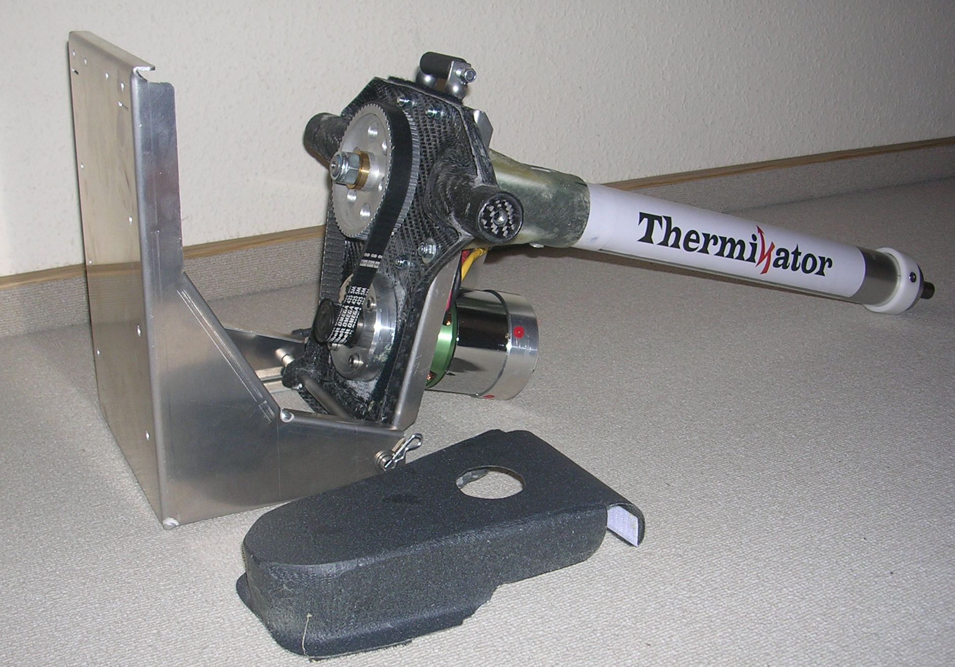 9.2.2017 oh je, jetzt fällt mir auf, dass der letzte Eintrag hier im August letzten Jahres war. Mittlerweile haben wir Februar 2017, das heist ja fast 6 Monate keine Berichterstattung! (Schäm) Ja, es war viel los im letzten halben Jahr, auch ausserhalb des fliegerischen Bereichs. Daher war hier etwas Funkstille. Aber es ging auch im Thermikatorprojekt voran. Kurz zusammengefasst sieht das dann so aus: Marco fliegt nach ca 8 Wochen Bauzeit mit seinem Antrieb Nr.1. Jahreszeitlich bedingt natürlich nur hin und wieder, aber der Aufbau hat geklappt und das Flugprogramm läuft. Chris ist gerade dabei den Thermikator Nr.2 aufzubauen und Holger wartet auf die Übergabe von Bausatz Nr.3. Wie ihr seht ging es ganz beachtlich voran. In den paar verbleibenden freien Minuten versuche ich meinen Antrieb nach ein paar Modifikationen nun auf's Frühjahr auch wieder einsatzklar zu bekommen. So hab ich bei mir einen Schutzbügel um den Motor angebracht der später auch noch verkleidet werden soll. Weiters wurde ein Lüfter an die Motorwelle adaptiert und eine Luftführung hierfür ist gerade in Arbeit. Den " Gasgriff" möchte ich auch noch überarbeiten. Er soll zukünftig aus zwei GFK-Schalen oder Tiefziehteilen bestehen und der analoge PWM-Geber wird dann einem Microcontroller weichen. Es geht also Schlag auf Schlag weiter, auch ohne große Worte.... So bald ich neue Bilder habe gibt es auch wieder was zu sehen |